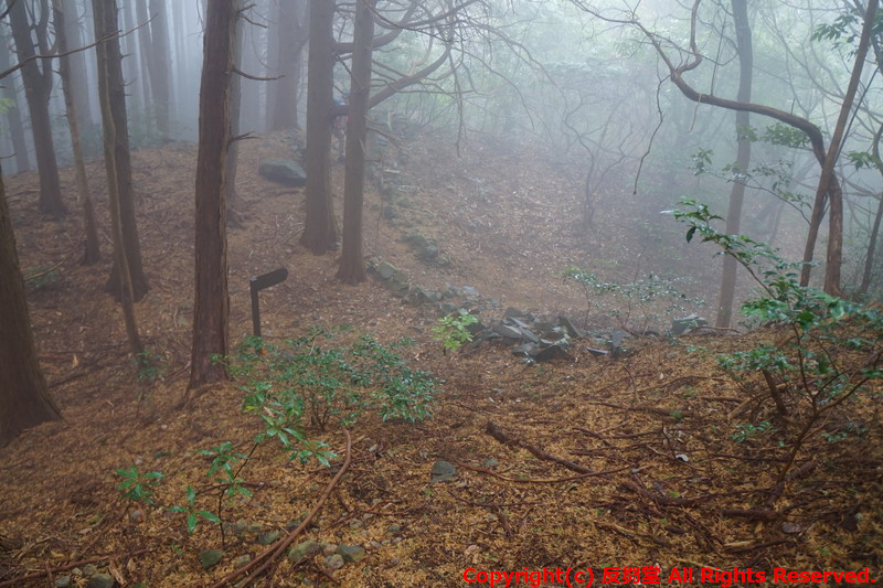 南端堀切の外に天水の巨大な石垣を伴った穴があったが、これは城外でもあるので遺構ではないのだろうか。