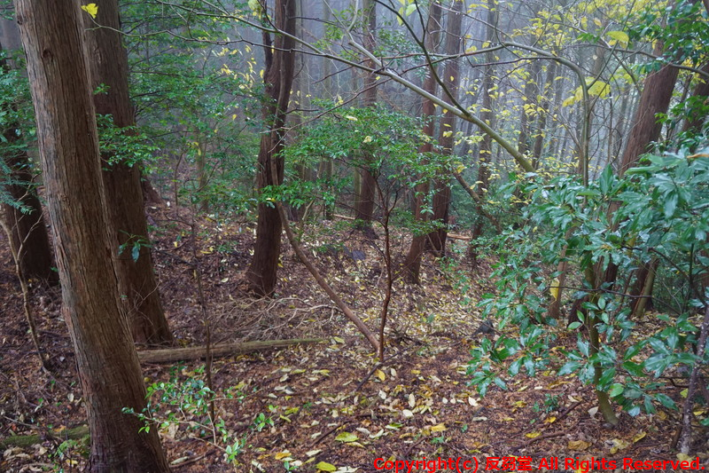ここから西へ断続的に斜面を下りながら土塁が続いており、一旦、鞍部に出る。