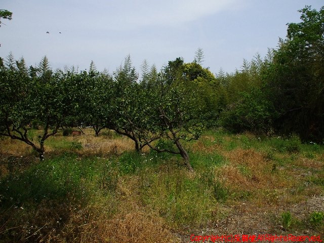 本曲輪は蜜柑畑(左画像)、その東側は竹薮で遺構は切岸くらいしか(右画像)、