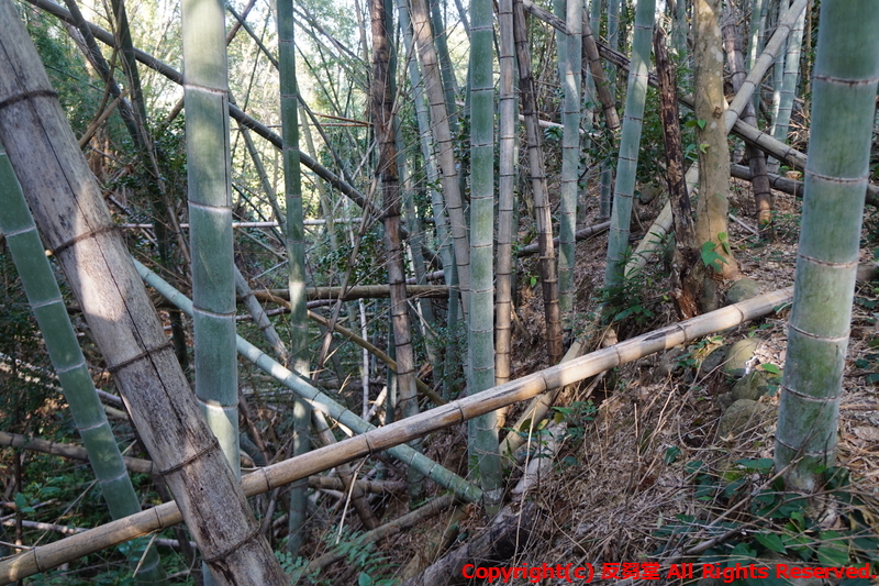 西側の郭に強引に登ると、竹薮であった。