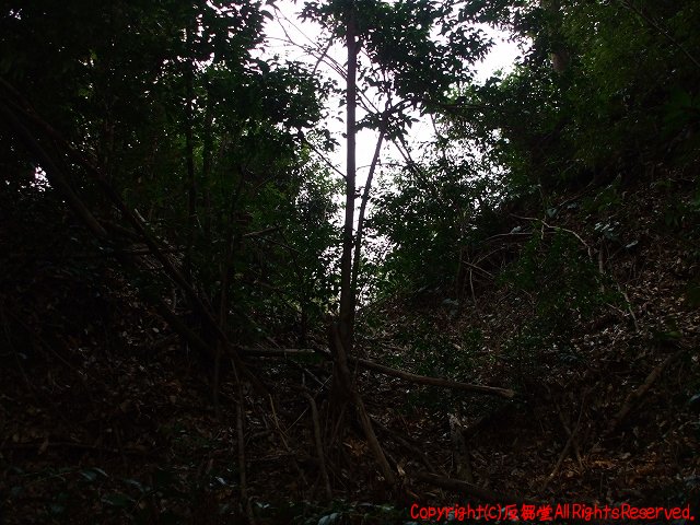 元来た道を引き返し、中之城への登り道と反対方向にやや痕跡が薄くなりつつある、