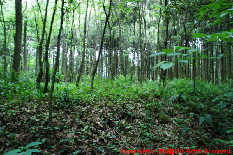 石碑のある場所から西へ少し行った辺りに入口があり、鬱蒼とした森へ入る。