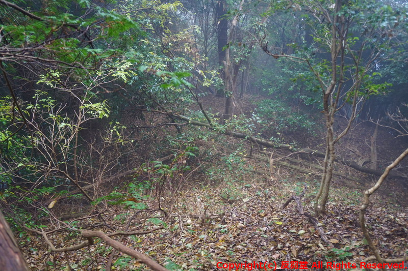 ここから西へ断続的に斜面を下りながら土塁が続いており、一旦、鞍部に出る。