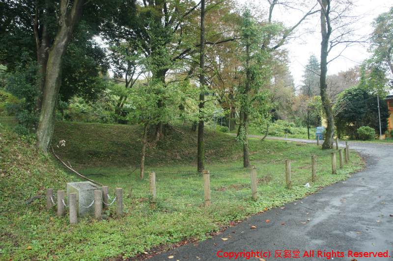 県道16号線側は堀の跡は良く分らないが、南側と門のある東側には、土塁と堀の跡が残っている(最右画像)。